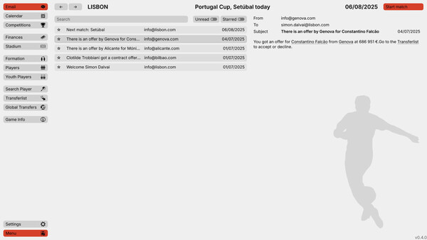 99Managers Futsal Edition is an open-source sports management game, where you control every aspect of a Futsal team, from tactics to finances and much more.
