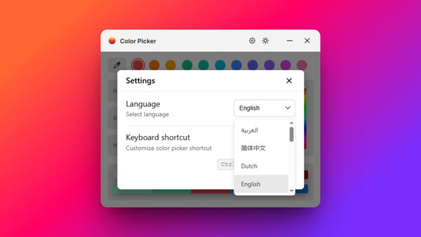 Color Picker automatically saves your last 11 colors. Plus, you can play with shades, complementary colors, and use the integrated canvas to effortlessly select new hues.