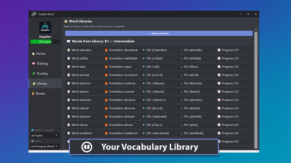 Display words over any app and learn English in the background — play games, work, watch shows, and grow your vocabulary effortlessly.