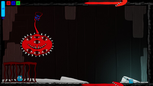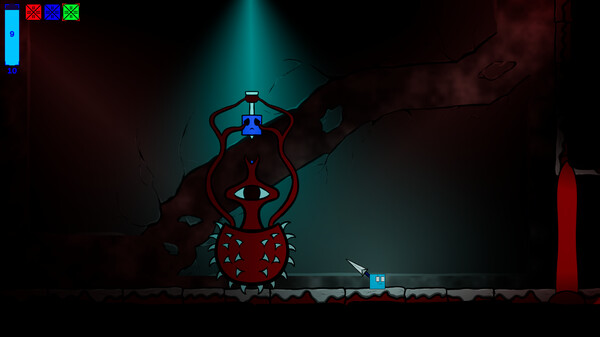 The blue squares lived a peaceful life until the creature that feeds on them found them.