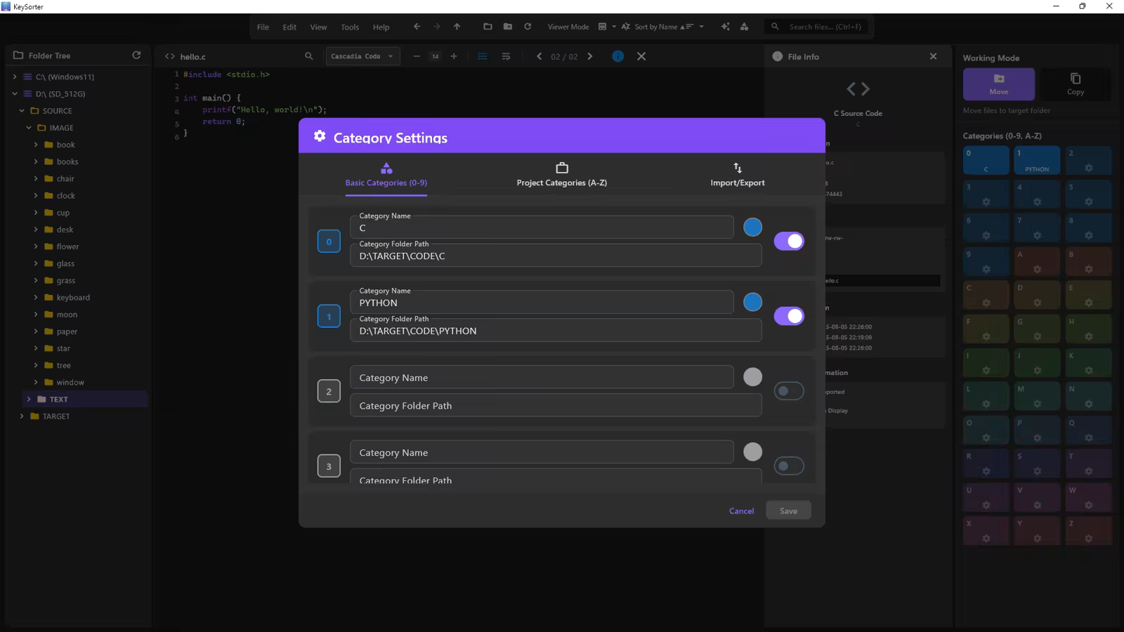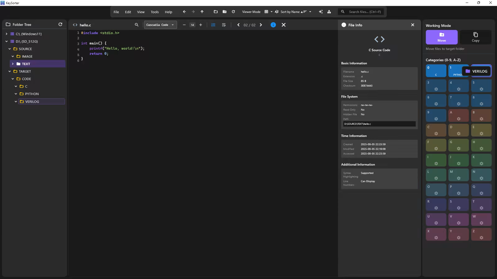 ⚡ Lightning-Fast Sorting Instantly move or copy files to up to 36 custom categories using keys 0-9 and A-Z. Tidy up thousands of files in minutes, not hours.