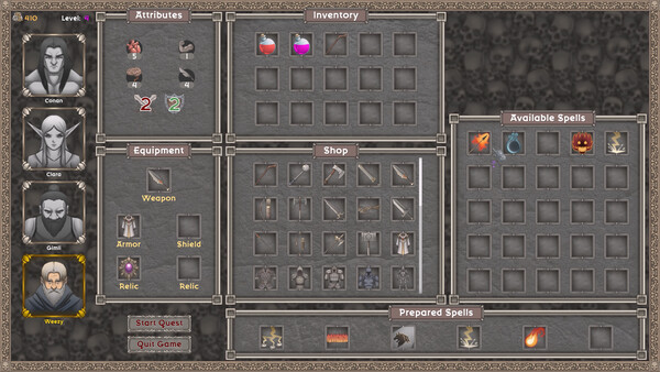 Upgrade Attributes - Invest experience points to increase Hit Points, Strength, Intelligence, and Dexterity