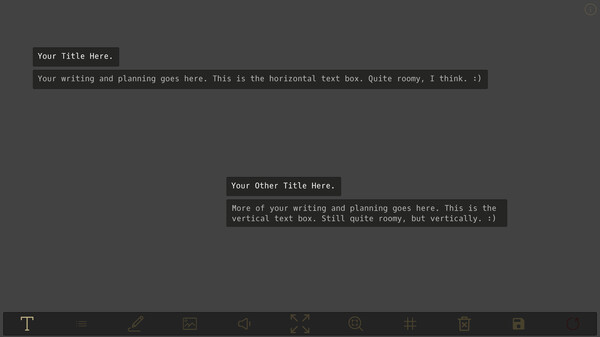 Designed with simplicity and versatility in mind, it boasts an infinitely growing canvas, infinite text boxes, a customizable pencil, and multiple nature sound tracks for you to choose from and help you focus!