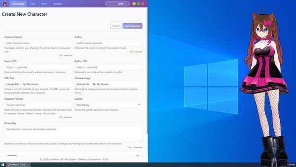 Pal Engine brings animated 3D character to your desktop β customizable, expressive, and optionally AI-powered.