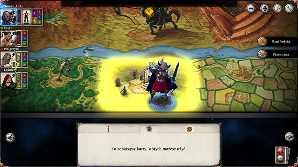 Możesz wykonać jedną z następujących czynności: Rzuć dwiema kośćmi w celu wykonania ruchu; wybierz jeden z wyników, aby się ruszyć, lub zsumuj oba, aby określić maksymalną długość ruchu, który możesz wykonać.