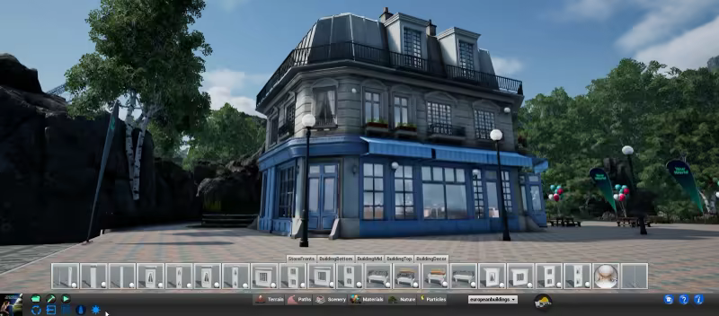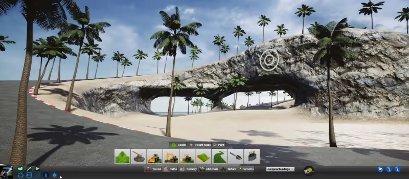 Foliage painting tools place nature elements around paths and scenery, allowing you to add grass, flowers, rocks, and trees in a single stroke.